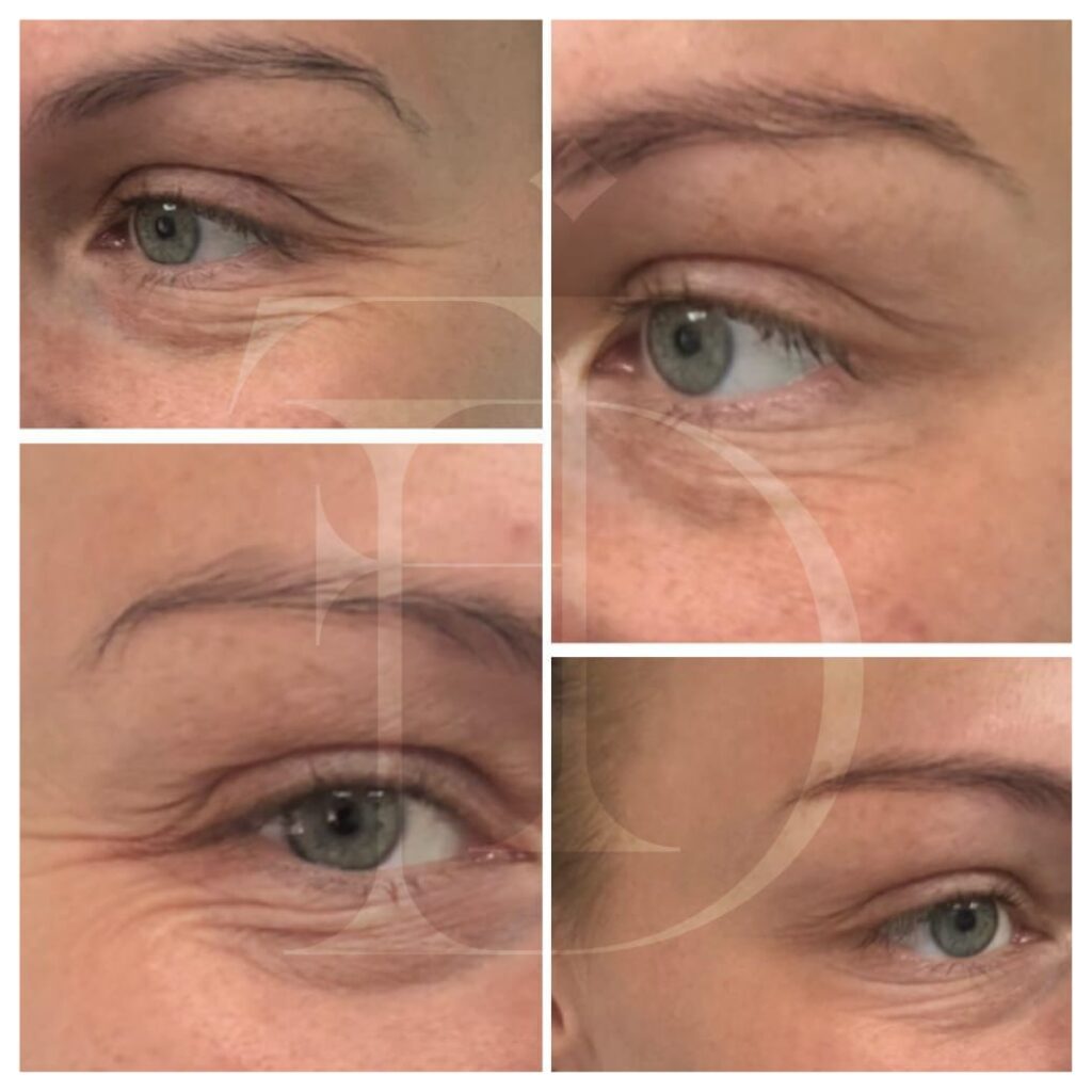 The product is injected in small, precise amounts at various sites around the eyes to minimise contraction of the muscle responsible for creating these crows’ feet.